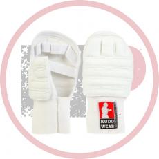 Накладки на руки – важнейший элемент экипировки, который защитит Ваши руки от травм и повреждений. Необходимы для участия в соревнованиях любого уровня. Эластичная перчатка с защитной войлочной накладкой защищает руку от ссадин при попадании в твердую часть шлема. Используются только в сочетании с бинтами. Одобрено Федерацией кудо России для выступления на соревнованиях.